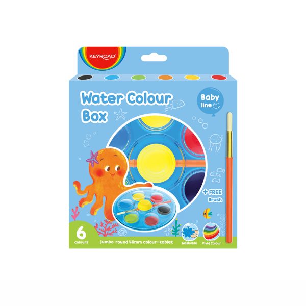 Acuarelas para niños con pincel. Caja plástica 6 colores