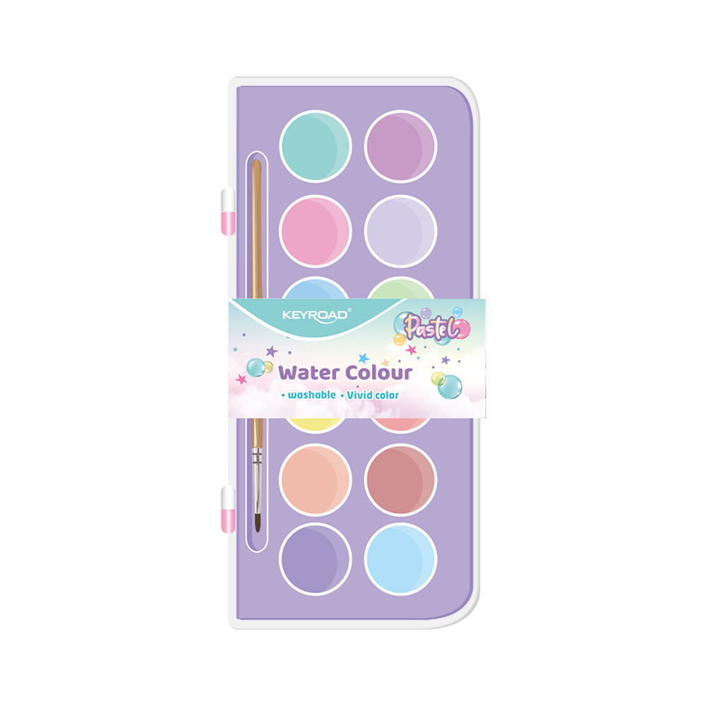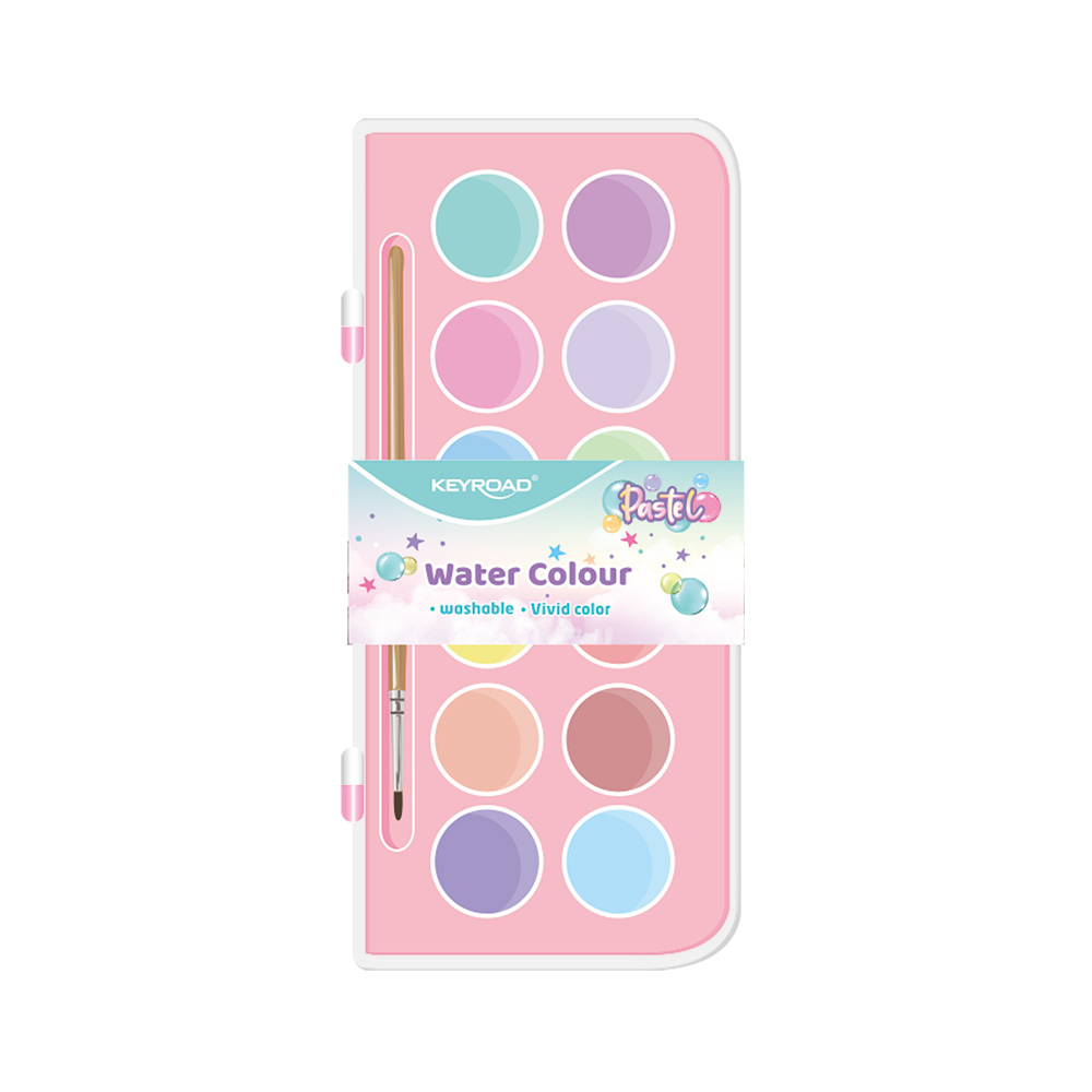 Acuarelas pastel con pincel. Caja plástica 12 colores