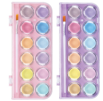 / Acuarelas pastel con pincel. Caja plástica 12 colores