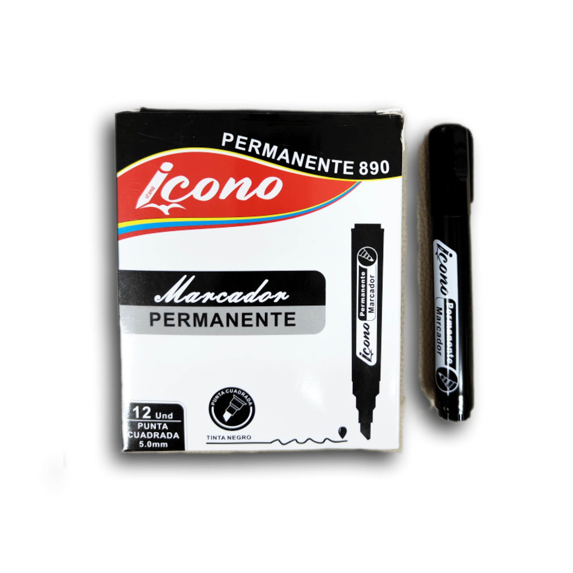 / ICONOMarcador permanente negro punta cuadrada. 12 und